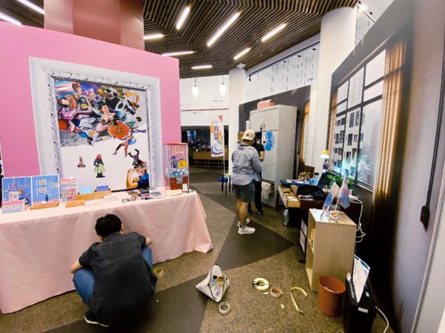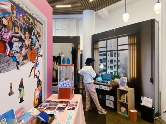 伴盟夥伴們在開展前一天,請來搬家公司把展區一隅「跨性別多重宇宙」所需傢俱與跨性別者捐贈展出的小物件,從辦公室打包出發至紅樓展區。我們在現場布展時,心情是極為複雜的;因為我們知道這已是實境,並非紙上談兵這麽簡單了。看著展板一片片拼貼上來,我們仍懷著忐忑,擔心無法把最好最好的展覽呈現給大家。